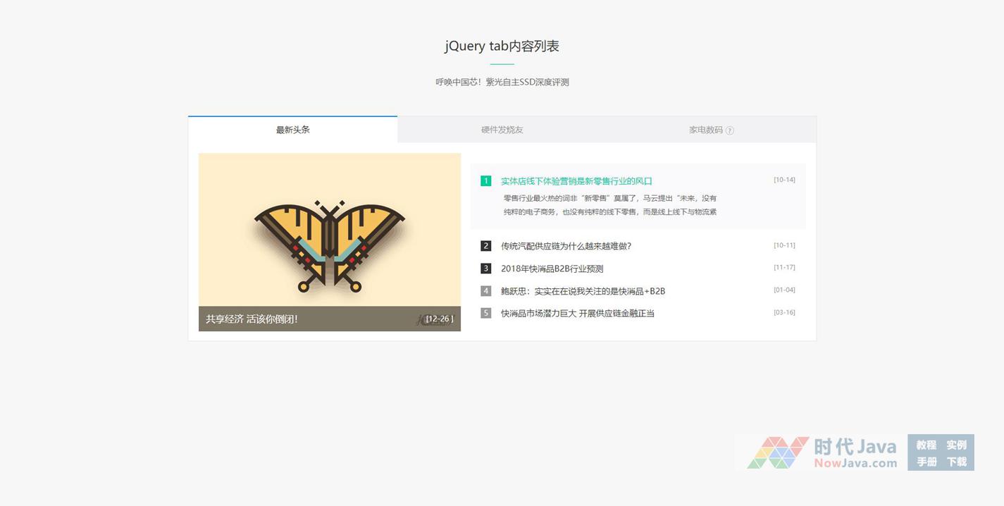 jQuery图文列表布局tab选项卡切换代码,包含了两种切换效果,一种是tab选项卡切换,还有一种是鼠标悬停新闻列表切换效果。