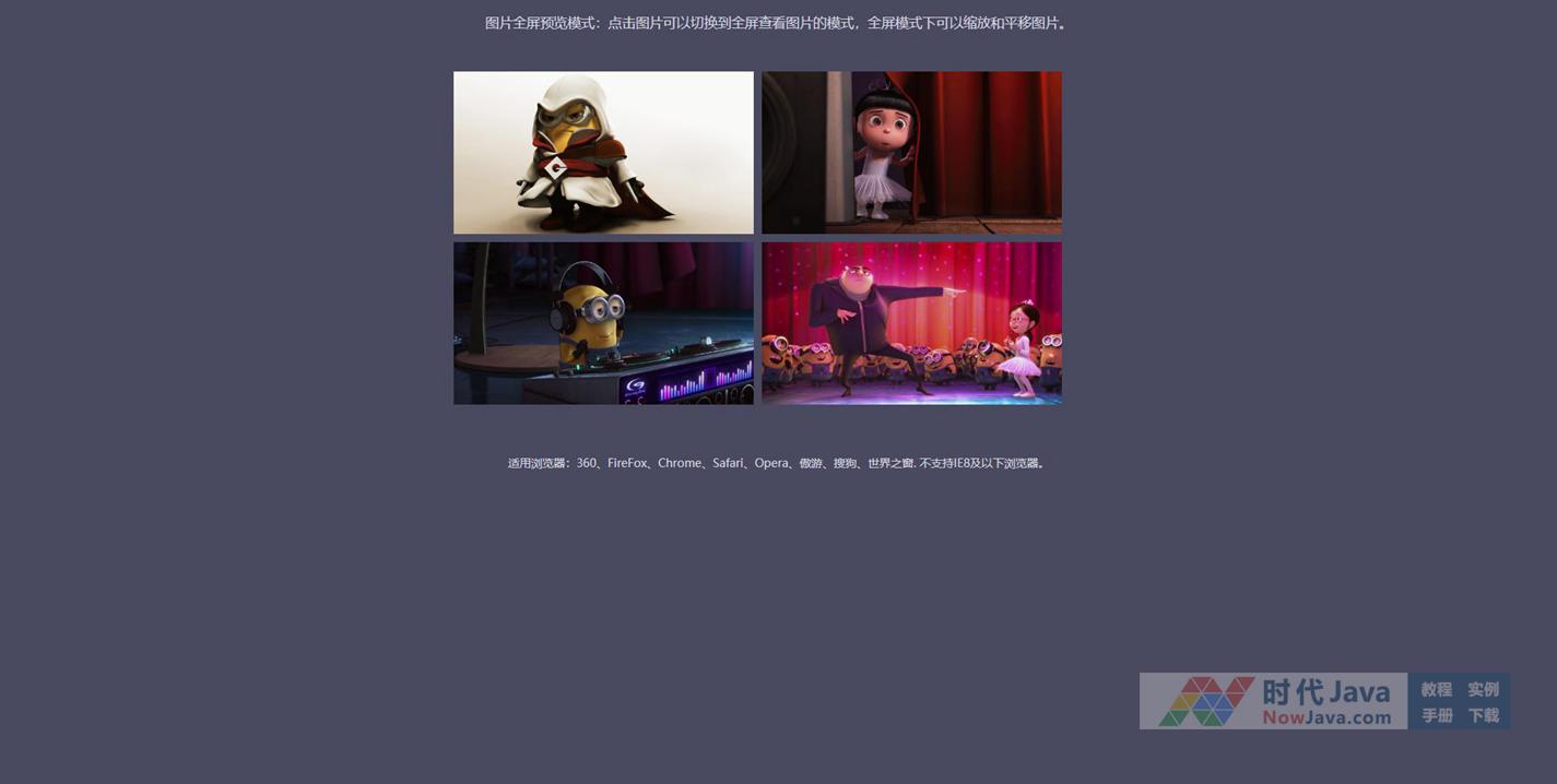 jQuery图片全屏缩放和平移预览代码,图片全屏预览模式:点击图片可以切换到全屏查看图片的模式,全屏模式下可以缩放和平移图片。