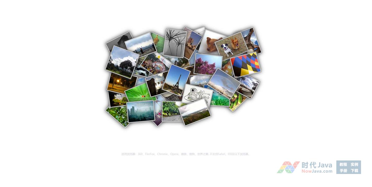 非常有创意的jQuery图片堆叠布局点击弹出幻灯片展示特效,弹出放大图片后,还可以点击左右箭头按钮进行切换,点击图片或空白处即可缩小复原图片。