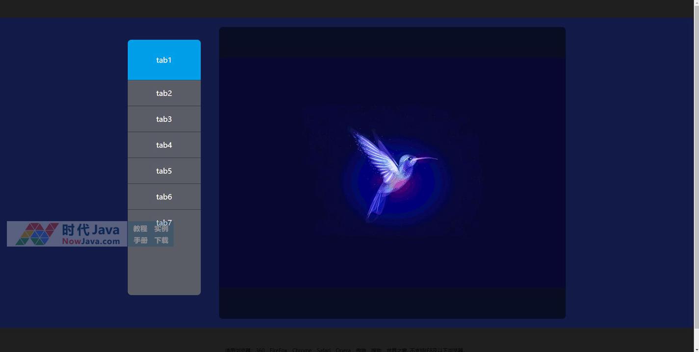 这是一款非常好看的jQuery垂直选项卡图片滑动切换代码,鼠标移至选项卡标签就进行切换,不用点击,可设置页面背景颜色一起变化。