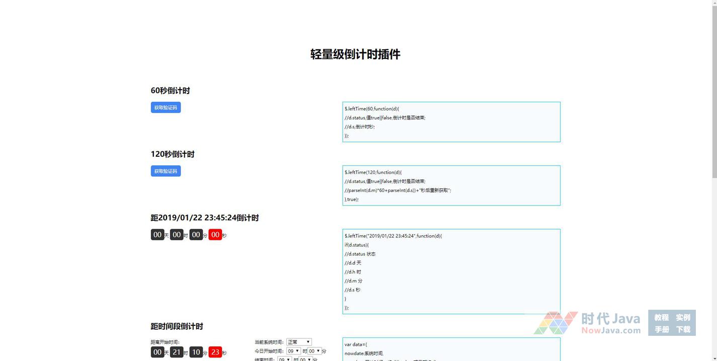 一款轻量级的jQuery多功能网页倒计时插件,可以自定义设置60秒、120秒倒计时手机短信验证码,还可以设置固定日期时间倒计时代码。