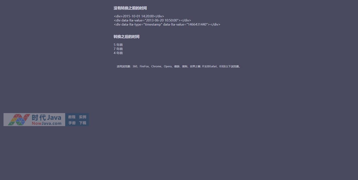 jQuery将时间转换为几天前代码是一款可以将昨天的某个具体时间转换为1天以前1年之前,可用于显示文章发布时间等场合。