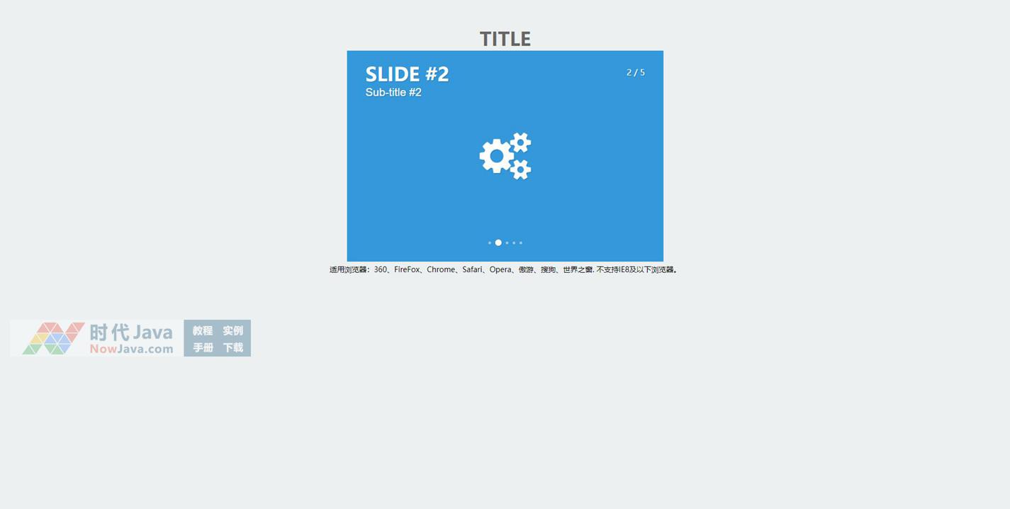 jQuery带标题文字介绍的图片轮播插件,代码很简洁的一个焦点图切换效果,本例中是以字体图标代替图片,鼠标悬停左右箭头上一张下一张切换按钮会出现。