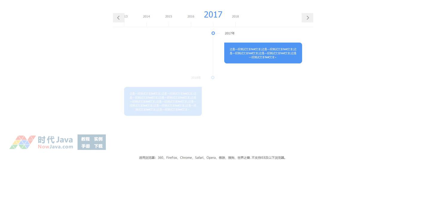 一款非常不错的jQuery年份时间轴滚动切换插件,通过左右按钮控制年份时间轴内容上下纵向滚动切换。