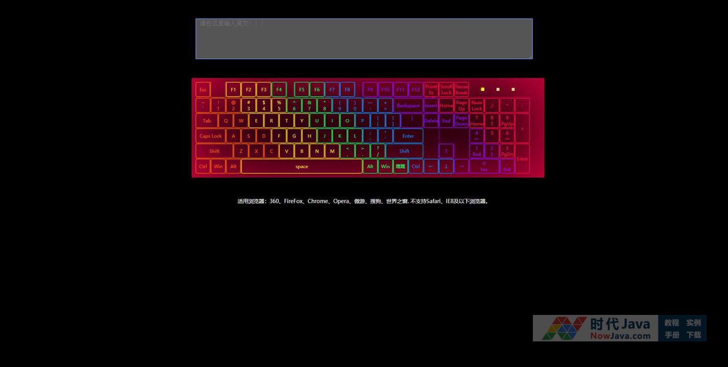 这是一款按键输入带音效的jQuery彩色酷炫虚拟键盘代码,网页键盘按键响应变色效果。