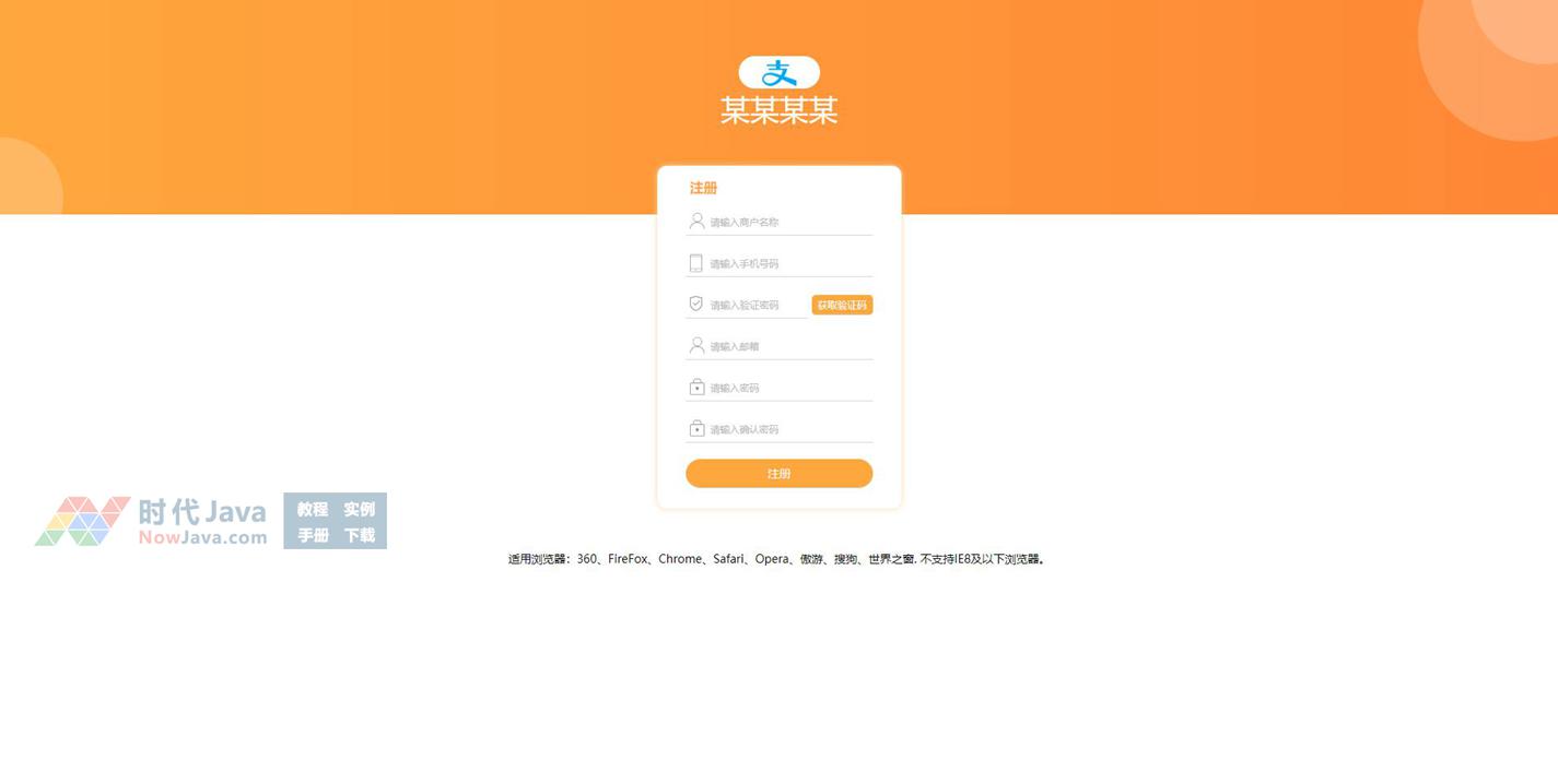 一款橙色界面风格的jQuery手机移动端注册表单验证代码,支持商户名称,手机号码,验证码,邮箱,密码等表单提交验证提示。