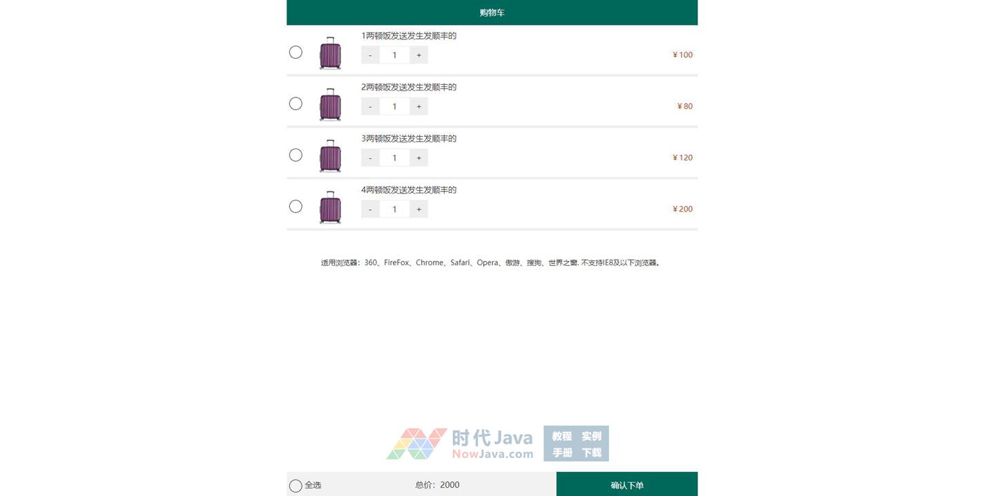 一款十分简洁的jQuery手机购物车结算页面代码,支持全选、单选、删除商品和计算商品总价等功能。