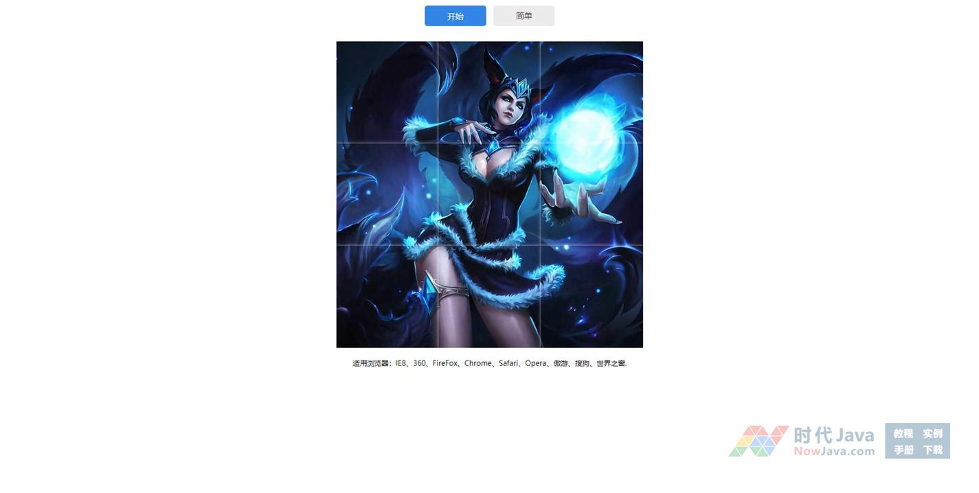 jQuery拼图小游戏代码是一款非常好玩的在线网页拼图游戏,可以选择挑战难度:简单,入门,中等难度,高难,外星人。