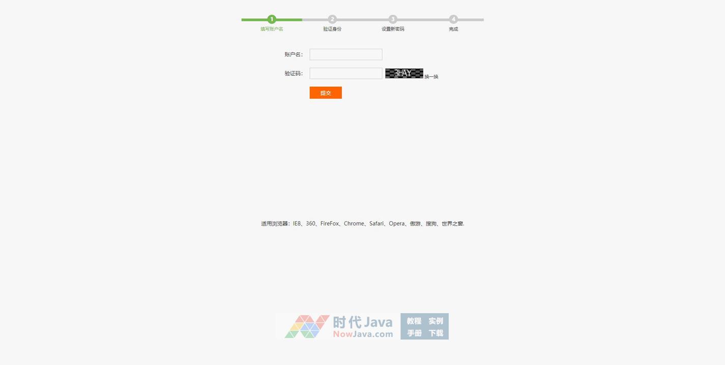 这是一款绿色清新风格的带有流程步骤的忘记密码找回密码验证表单代码,jQuery按步骤找回密码代码。