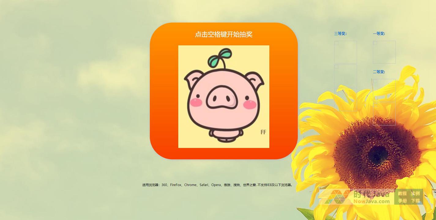 jQuery按空格键随机抽奖代码是一款点击空格键开始抽奖,接着每按一次空格键就抽一个中奖名额的网页抽奖特效。