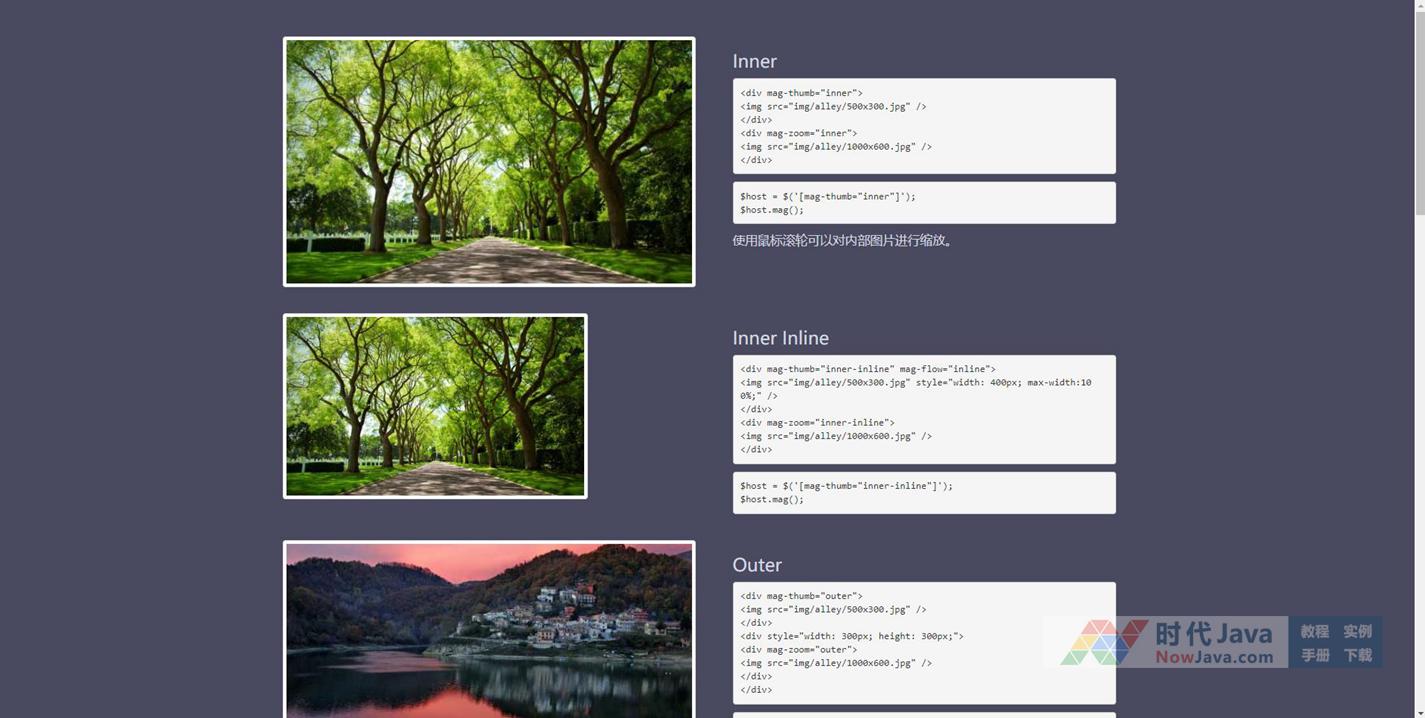 jQuery支持局部缩放图片放大镜插件是一款提供2种图片缩放模式,图片内部缩放和图片外部缩放,并且可以在图片上使用鼠标滚轮来对图片进行局部缩放。