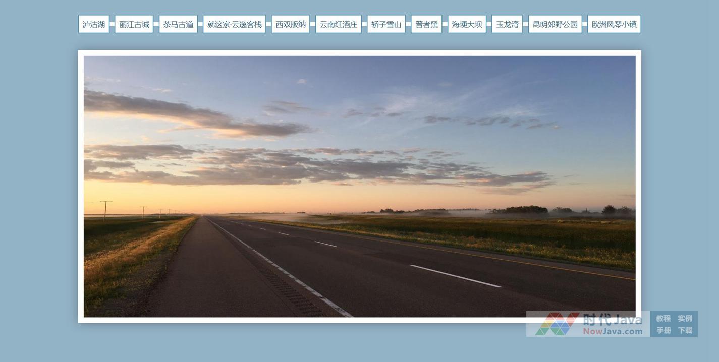 一款宽屏的jQuery旅游相册图片tab切换展示特效,点击文字标题选项卡标签切换对应的相册大图预览。