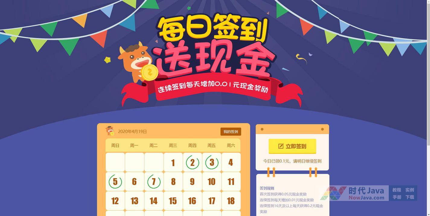 jQuery日历签到插件每日签到页面代码