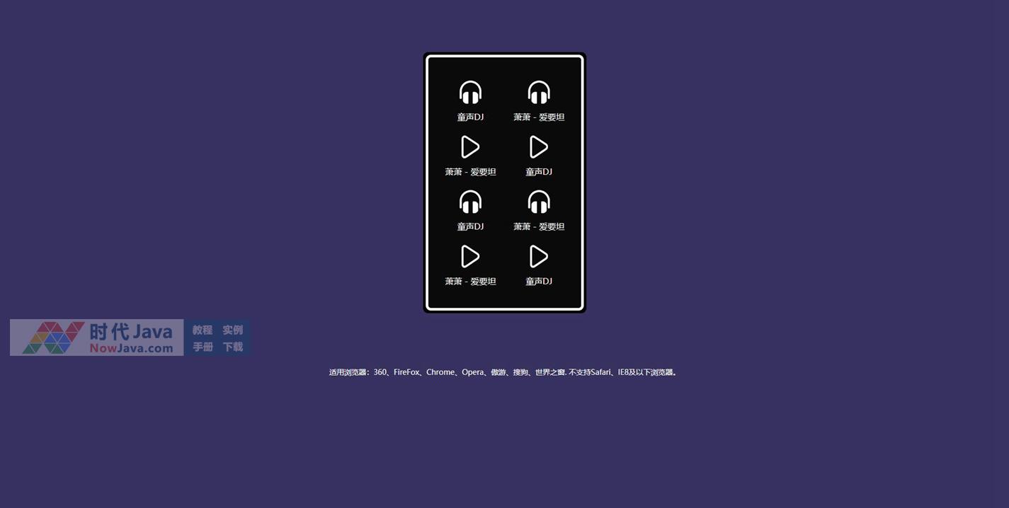 这是一款很个性化的jQuery点击图标播放mp3音乐代码,基于html5 Audio属性制作的网页音乐播放器,支持列表布局形式排列,只能同时播放一首音乐。
