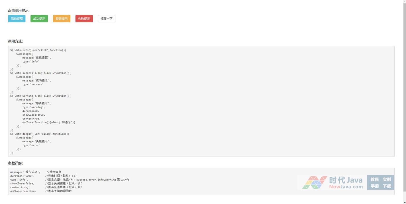 简单的jQuery点击弹出信息提示框插件,点击按钮调用浮动提示框,有几个比较常用的:信息提醒、成功提示、警告提示、失败提示等。