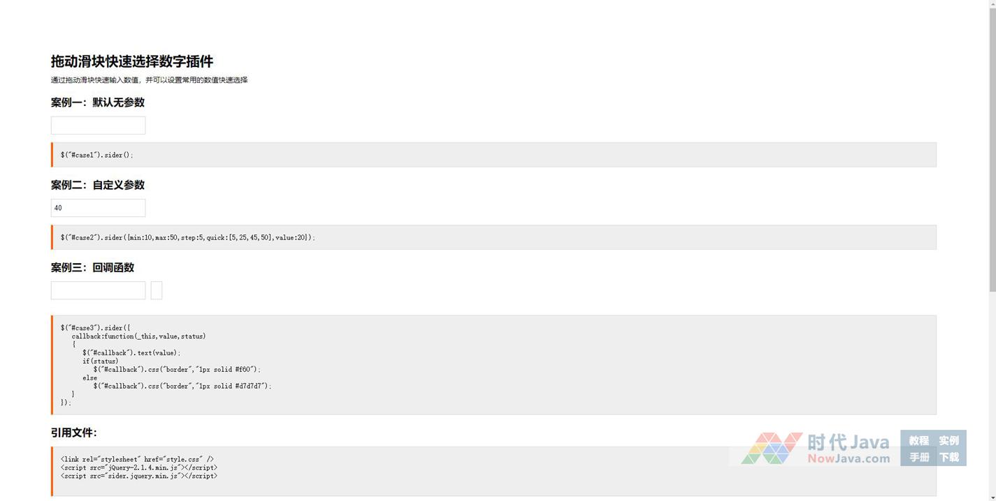jQuery点击或拖动滑块选择数值代码是一款通过拖动滑块快速输入数值,并可以设置常用的数值快速选择插件 。