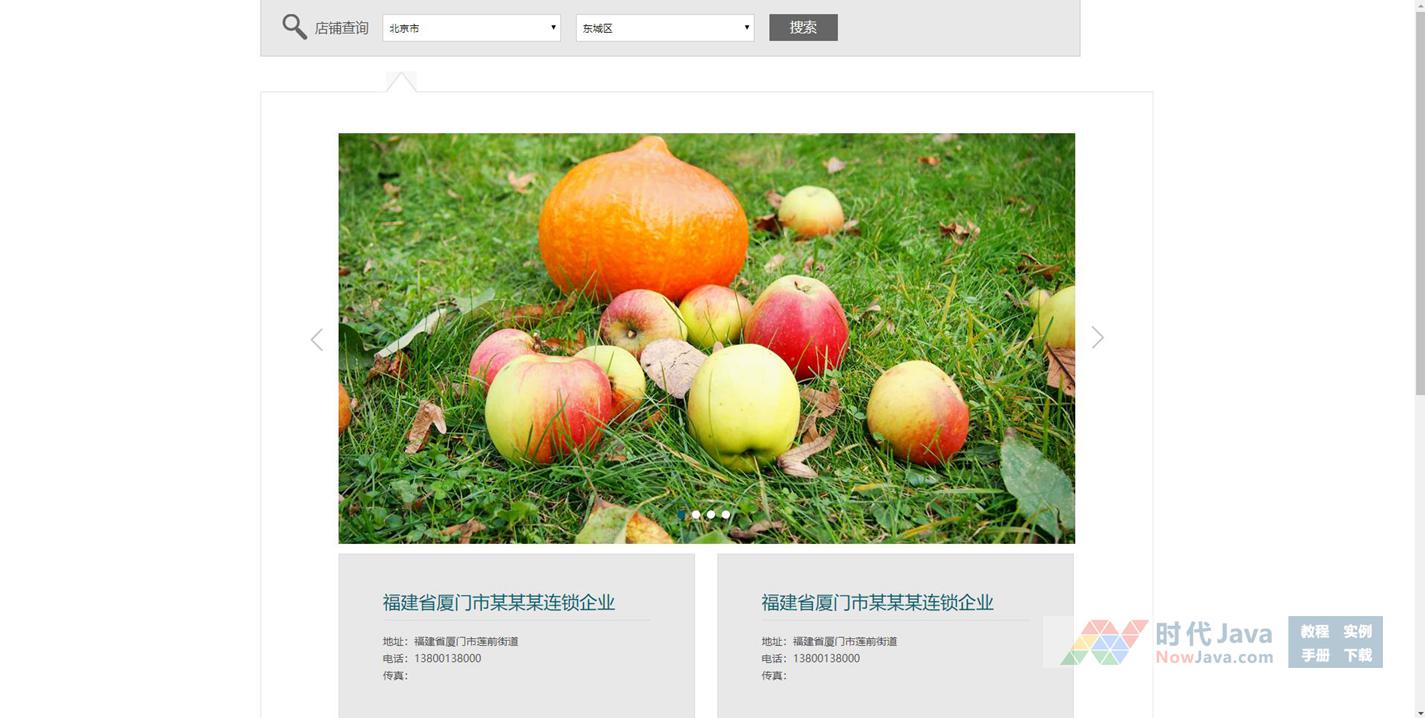 这是一款适用于网络营销,查询连锁店铺全国网点的jQuery省市二级联动关联店面查询表单代码,主要还是城市联动下拉选择菜单效果,查询结果还得程序里自己具体实现。