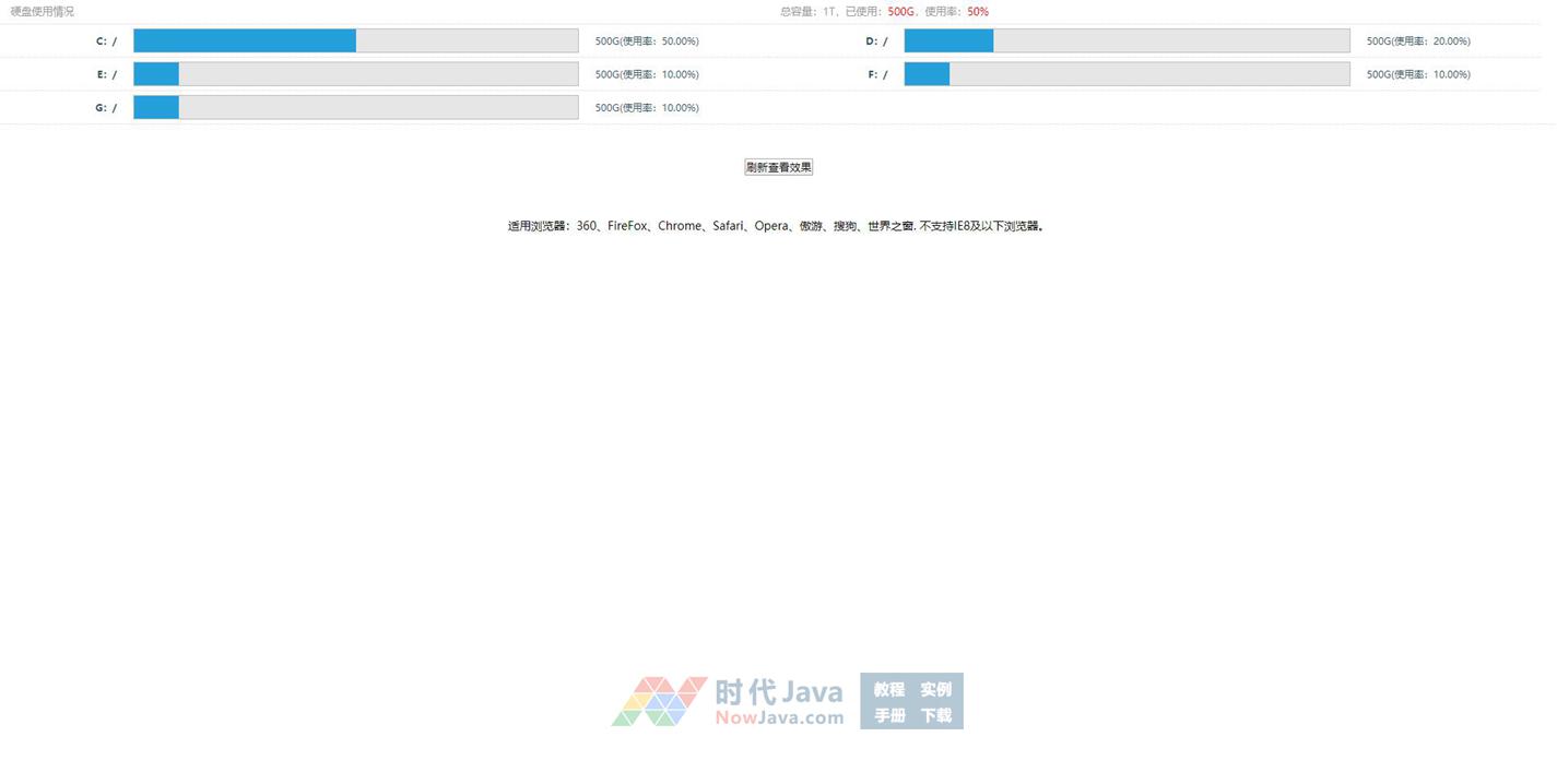 这是一款jQuery实现的显示硬盘容量使用情况百分比特效,硬盘百分比进度条js代码。