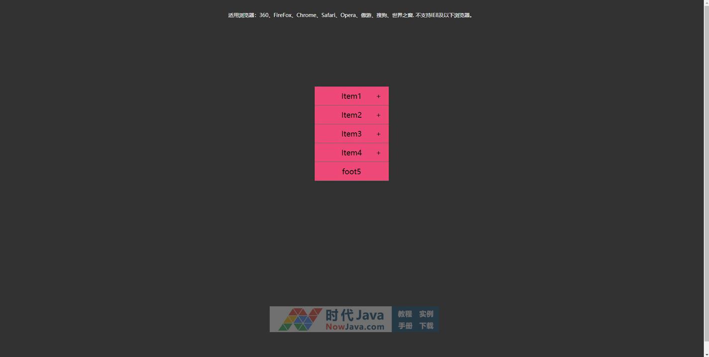jQuery竖排动画手风琴折叠菜单栏代码是一款粉红色风格动态伸缩手风琴代码,展开一个另一个自动收缩。
