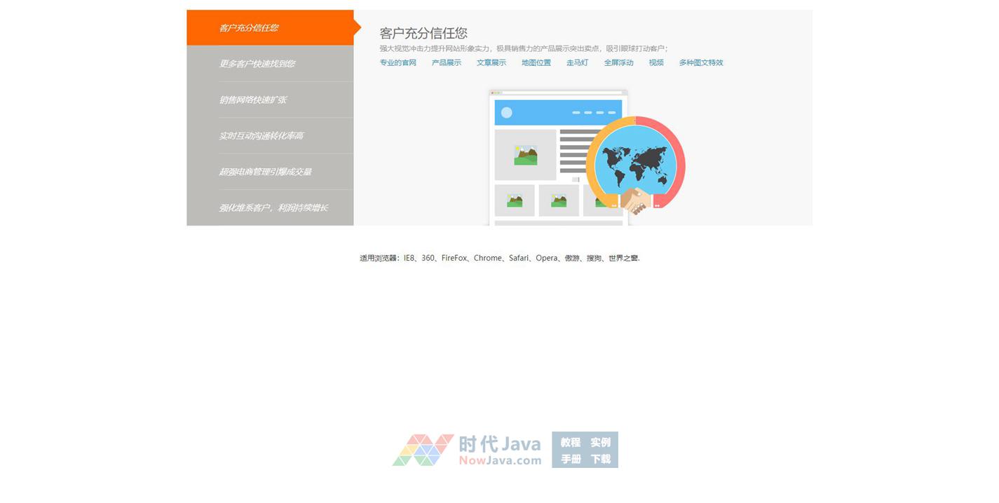 这是一款橙色的选项卡切换样式特效,jQuery纵向鼠标经过tab选项卡内容切换代码。