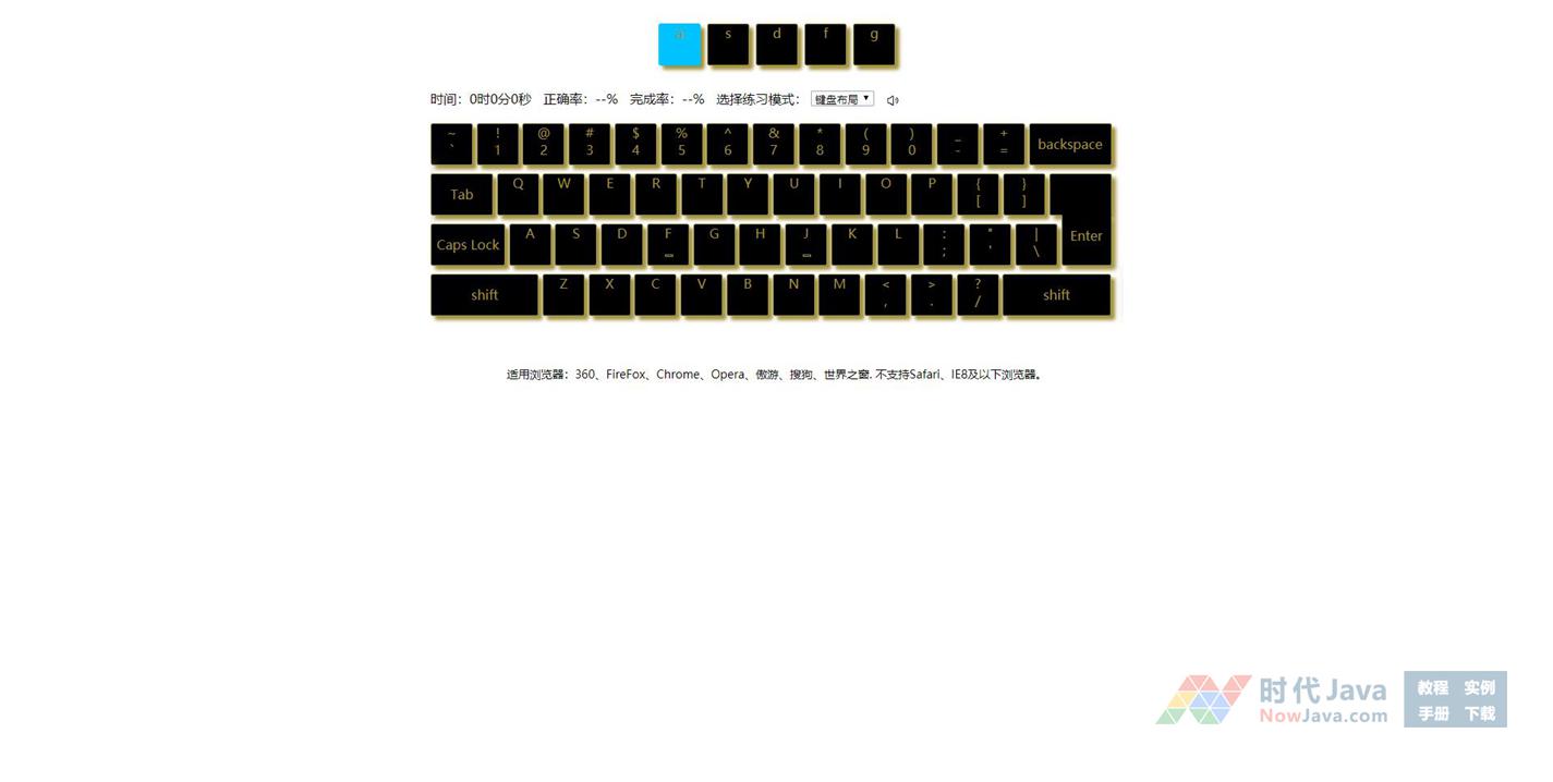 一款很益智的jQuery网页版键盘打字练习小游戏代码,可以帮助新手熟悉键盘提高打字速度。