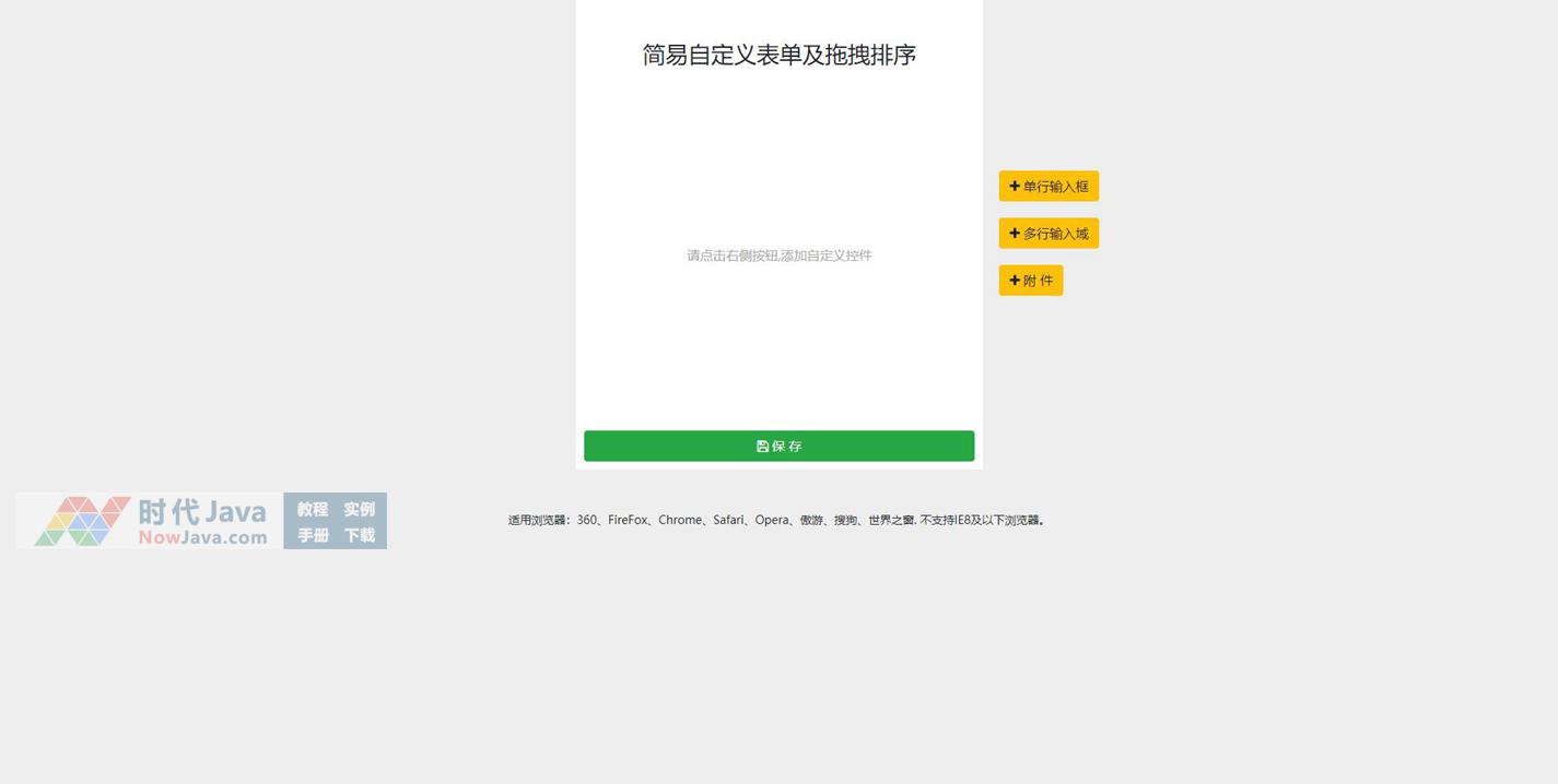 jQuery自定义添加编辑删除表单模块及拖拽排序代码,一款不错的表单模块编辑器,编辑完成后点击保存按钮可以获取各表单模块的值。