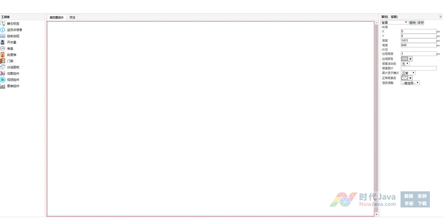 一款可以在线自由编辑设计的组态图,最左边是工具箱,可以拖动里面的工具放置中间画布上,点击预览可以显示当前的设计效果,最右边的属性是对组件的编辑,选中某个组件可进行编辑的jQuery组态图库ui界面代码。