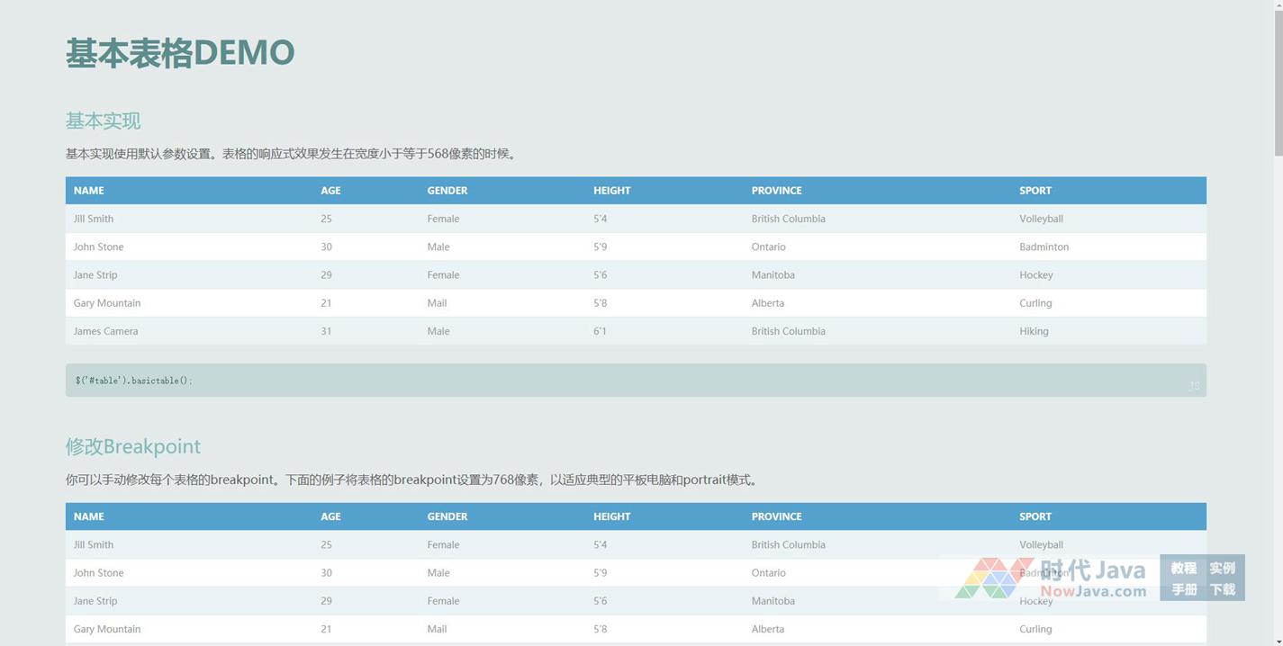jQuery自适应浏览器宽度响应式表格插件basictable