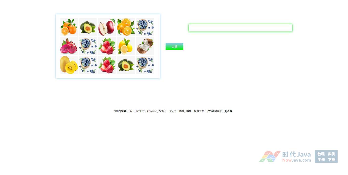 一款采用数组去重的方法过滤重复的水果图片效果代码,jQuery水果图片重复筛选去除代码。