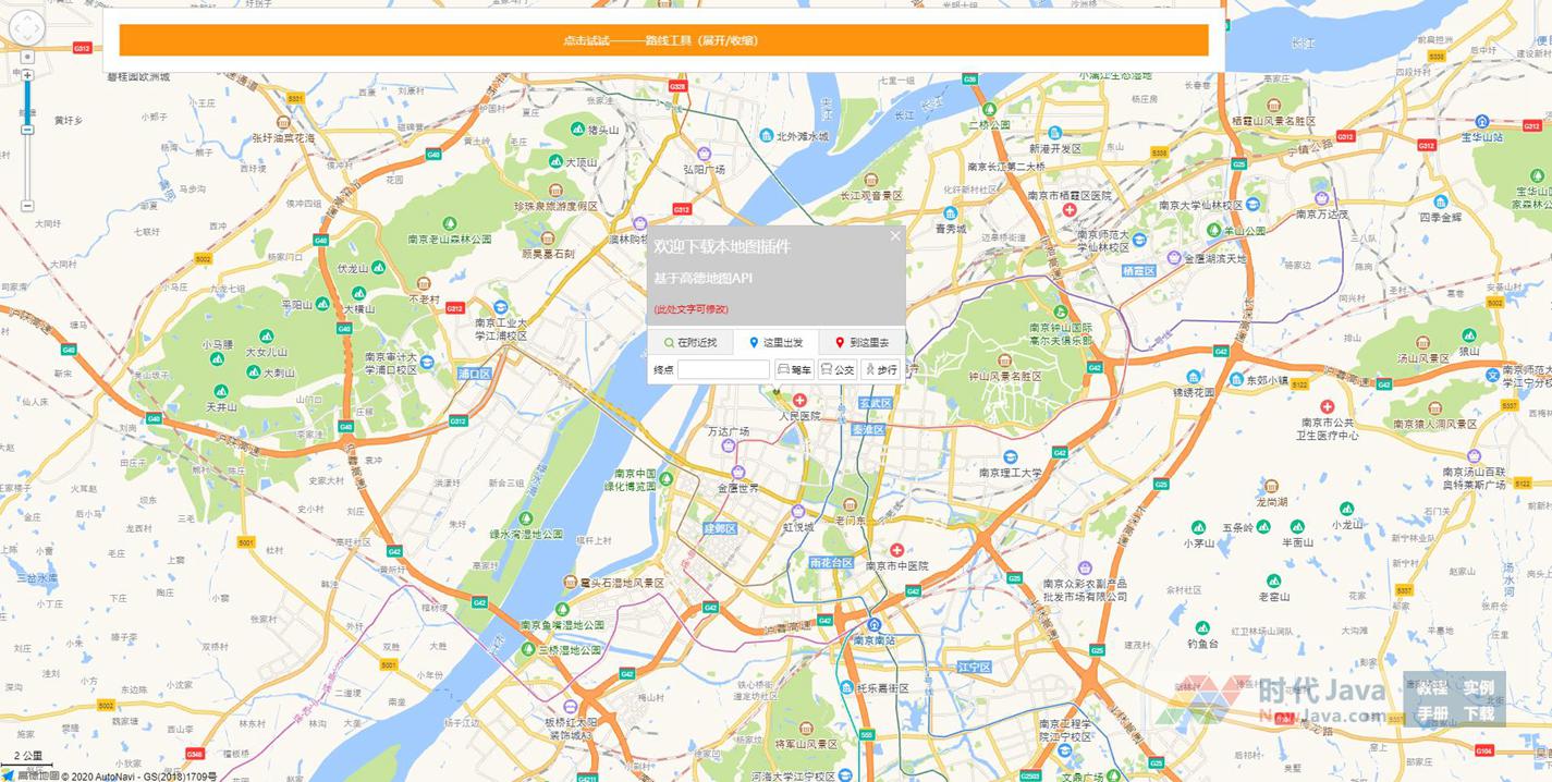 一款输入搜索路径,右键拖拽放大,左键点击测量路径的jQuery高德地图api开发实例代码。