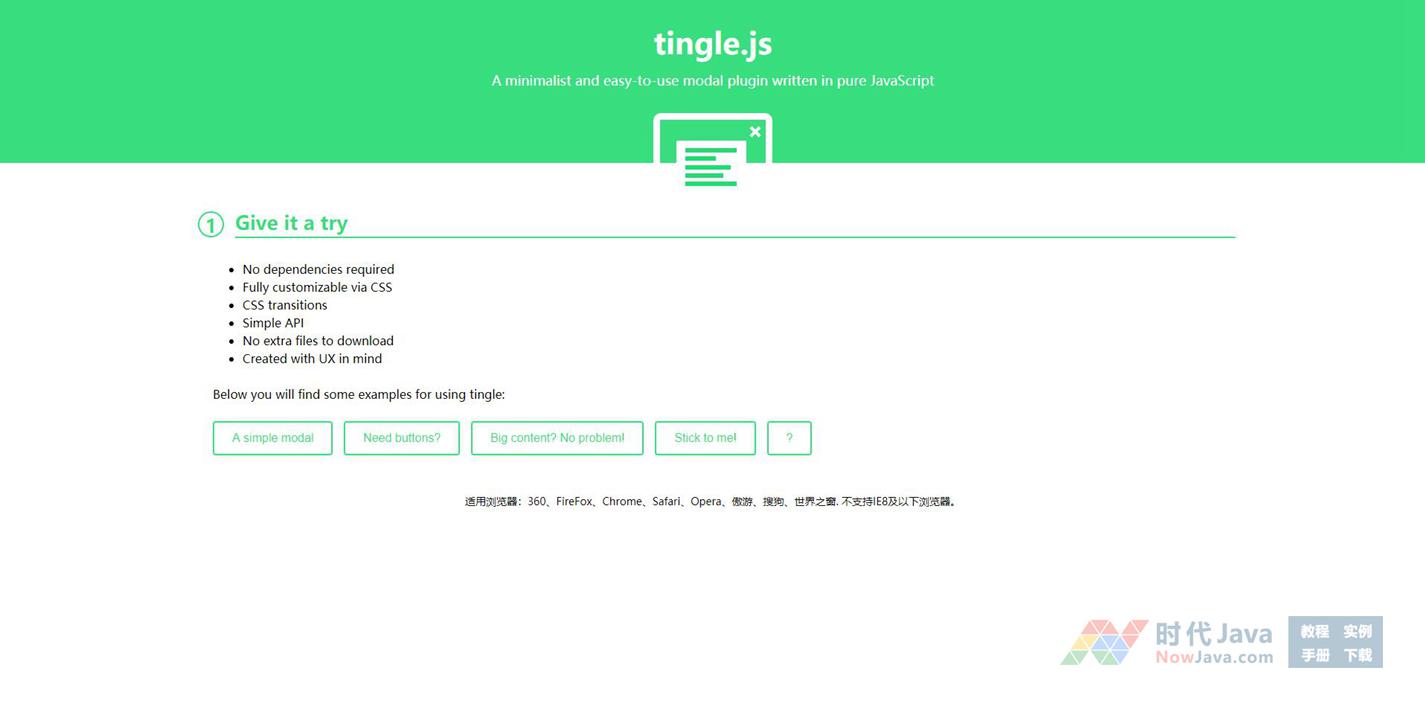JS模态窗口插件tingle.js是一款使用CSS来渲染样式,支持CSS3过渡动画弹出模态窗口提示层,提供编程API。