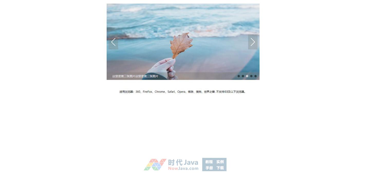原生js实现一款简单的带标题焦点图自动轮播代码,支持点击左右箭头按钮和右下角索引按钮控制切换,鼠标悬停到图片上时停止自动轮播,鼠标离开则继续自动轮播。