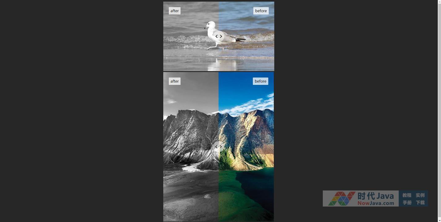 一款简单实用的JS拖动滑块对比图片处理前后效果代码,通过拖动滑块来将原图和处理后的图片两张图片进行对比。