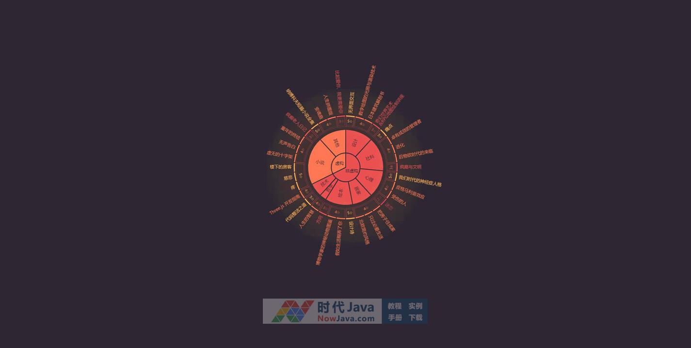 js旭日图表统计代码是一款独特的基于echarts图表插件制作的圆形标签分类统计代码,圆环图与树状图的合体。