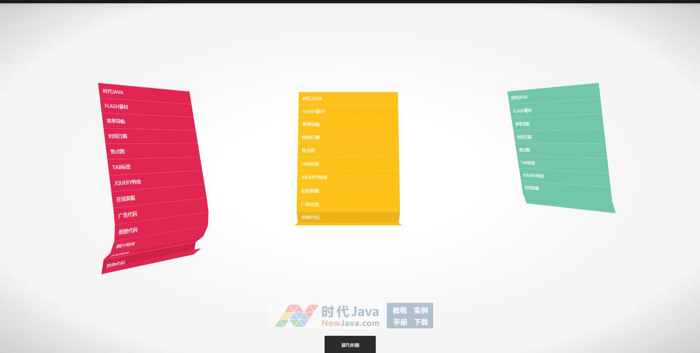 一款卷帘效果非常不错的jquery导航菜单,不过仅限于高版本浏览器,即支持css3属性的浏览器才能使用