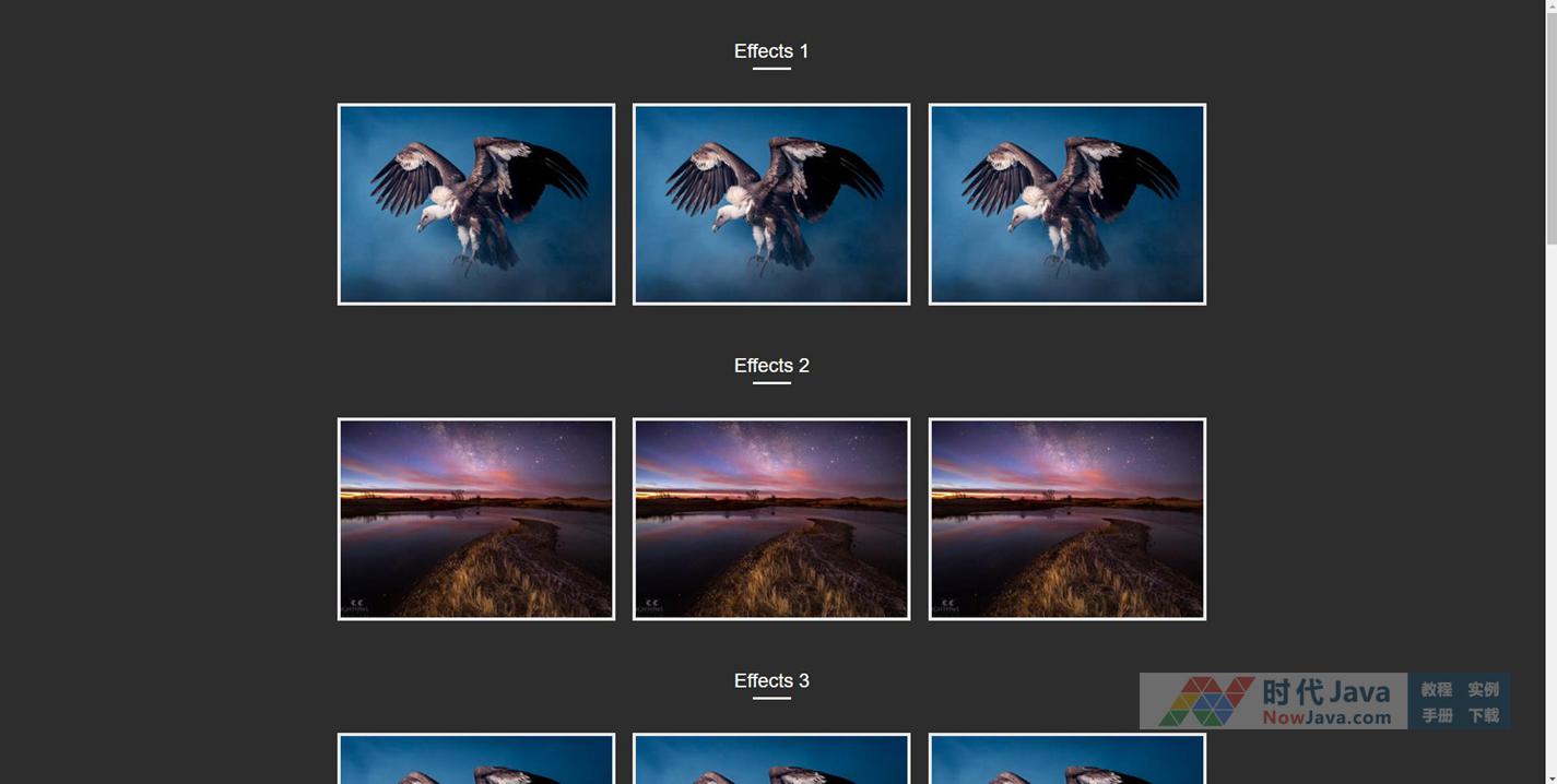 效果描述: 纯CSS3实现的鼠标悬停动画效果,各种炫酷动画,用户体验非常好