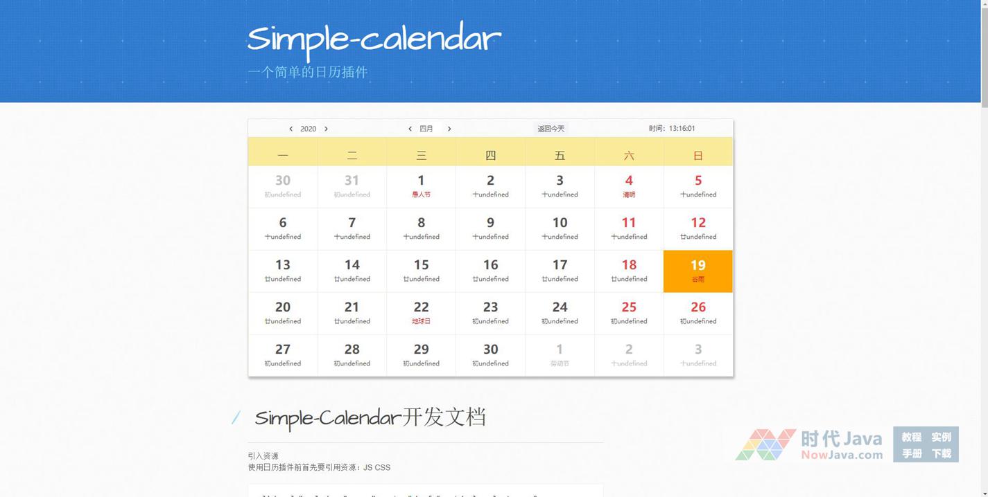 一款简单带农历节日的SimpleCalendar.js日历插件,会自动根据大小调整对应的样式的日历代码。