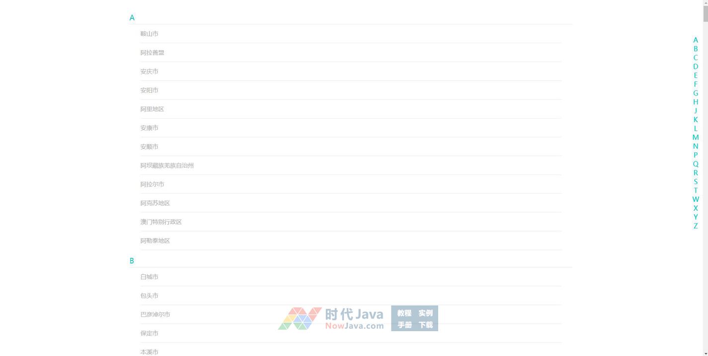 zepto手机移动端拼音字母城市选择代码