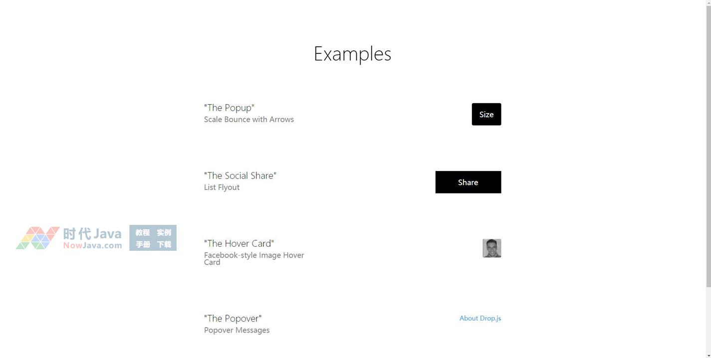 几款基于Drop.js插件实现的下拉弹出层特效,jQuery制作多种网页弹出层效果代码。