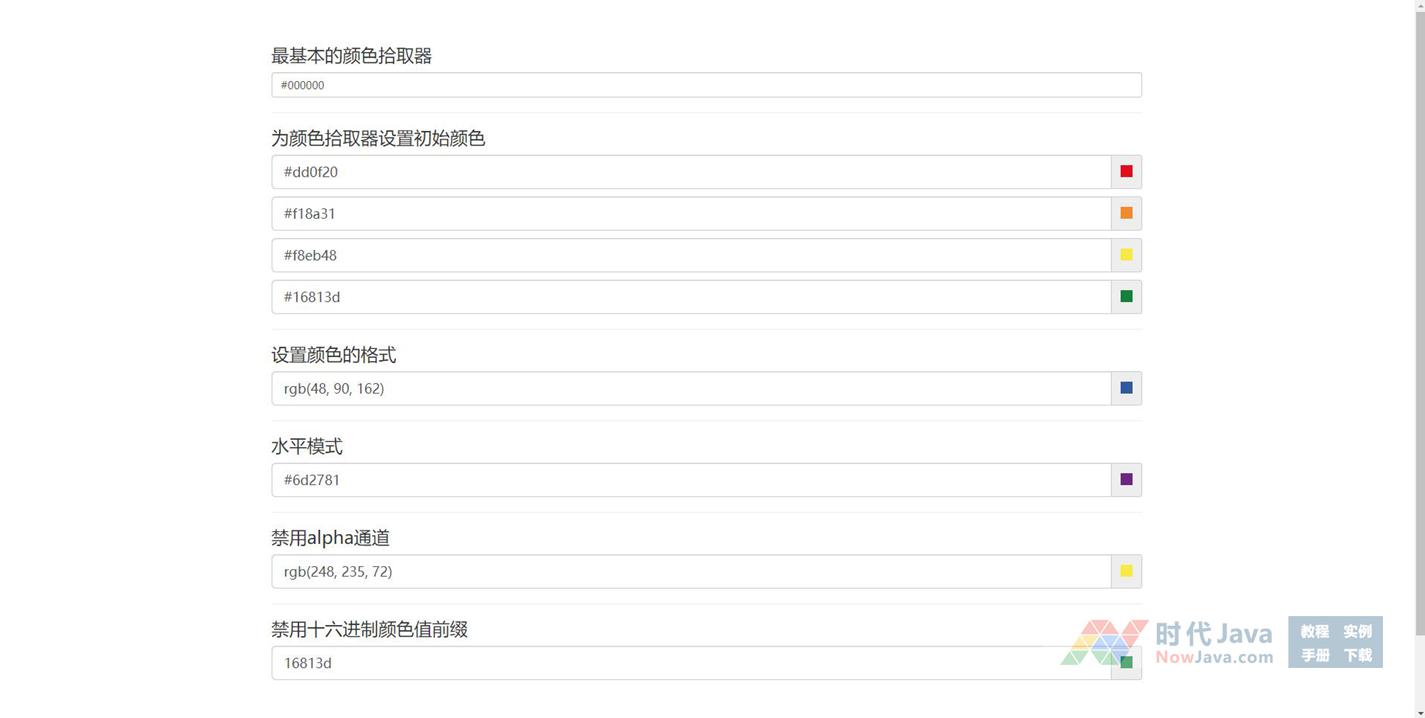 一款功能强大的jQuery颜色拾取器插件,实用的jQuery网页颜色选择器代码,允许选取颜色,它提供多种颜色格式hex, rgb,rgba,hsl,hsla,并提供功能强大的API来控制颜色拾取器。