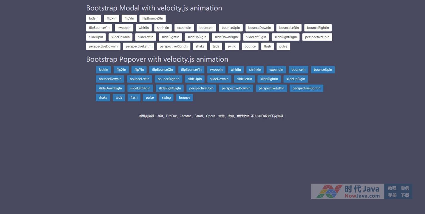 一款在Bootstrap模态窗口和Popover的基础上,使用velocity.js来制作模态窗口和Popover打开时的动画过渡效果的jQuery打开模态窗口代码。