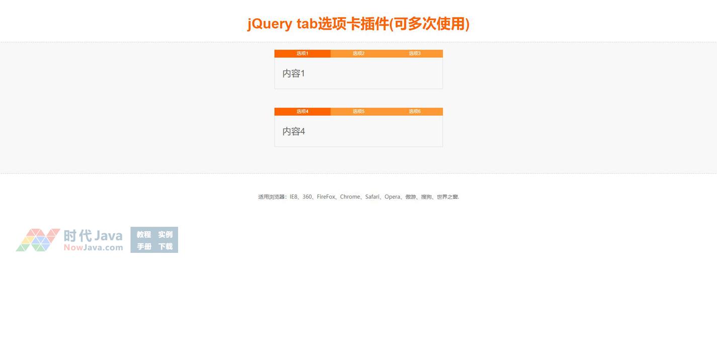 一款基于jQuery实现的选项卡特效,可在同一个网页页面多次使用的tab选项卡插件。
