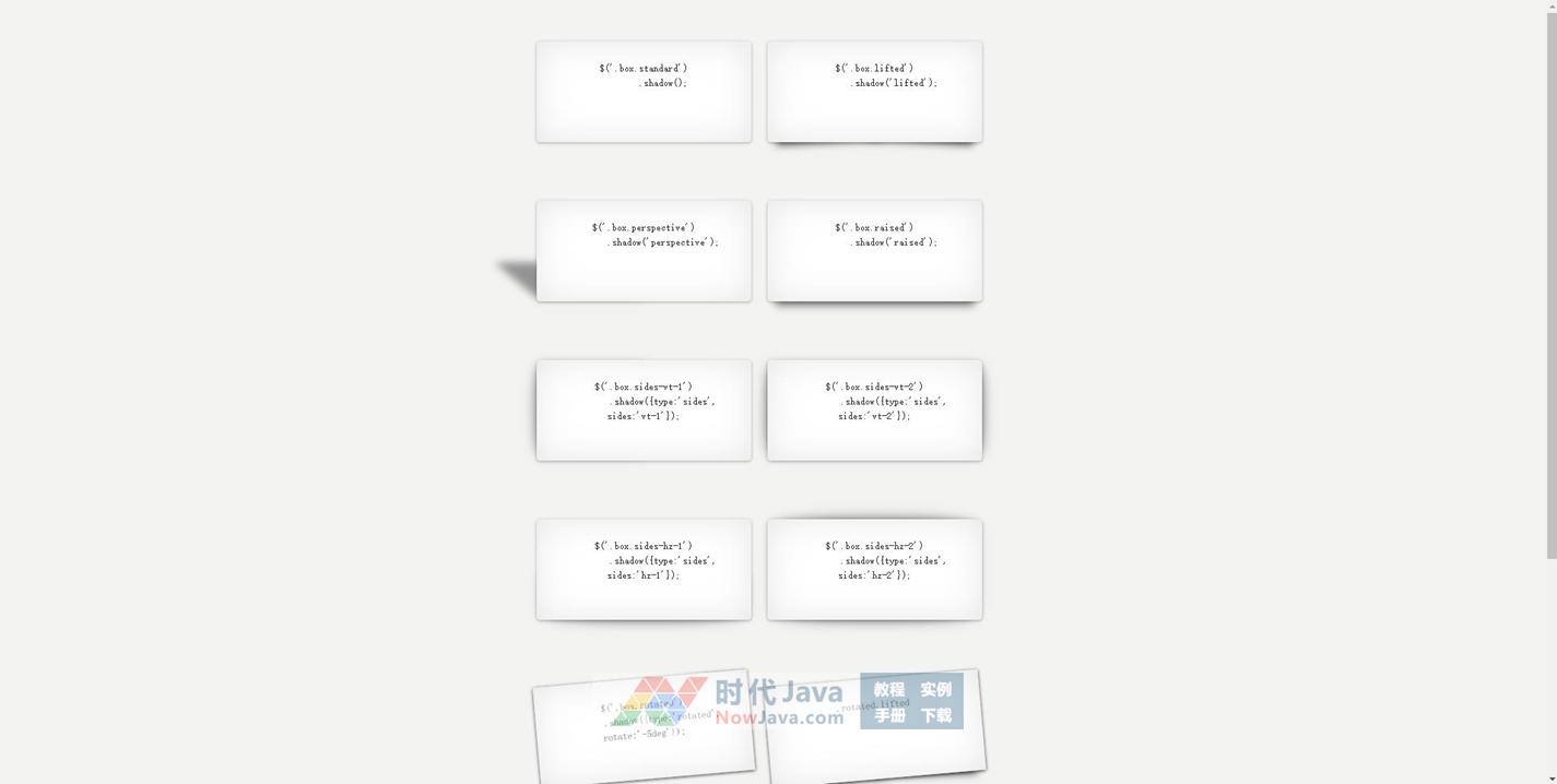 一款基于CSS3 box-shadow实现的可以通过配置参数快速为元素生成各种投影效果,可快速生成阴影投影效果的jQuery插件,多种投影样式。