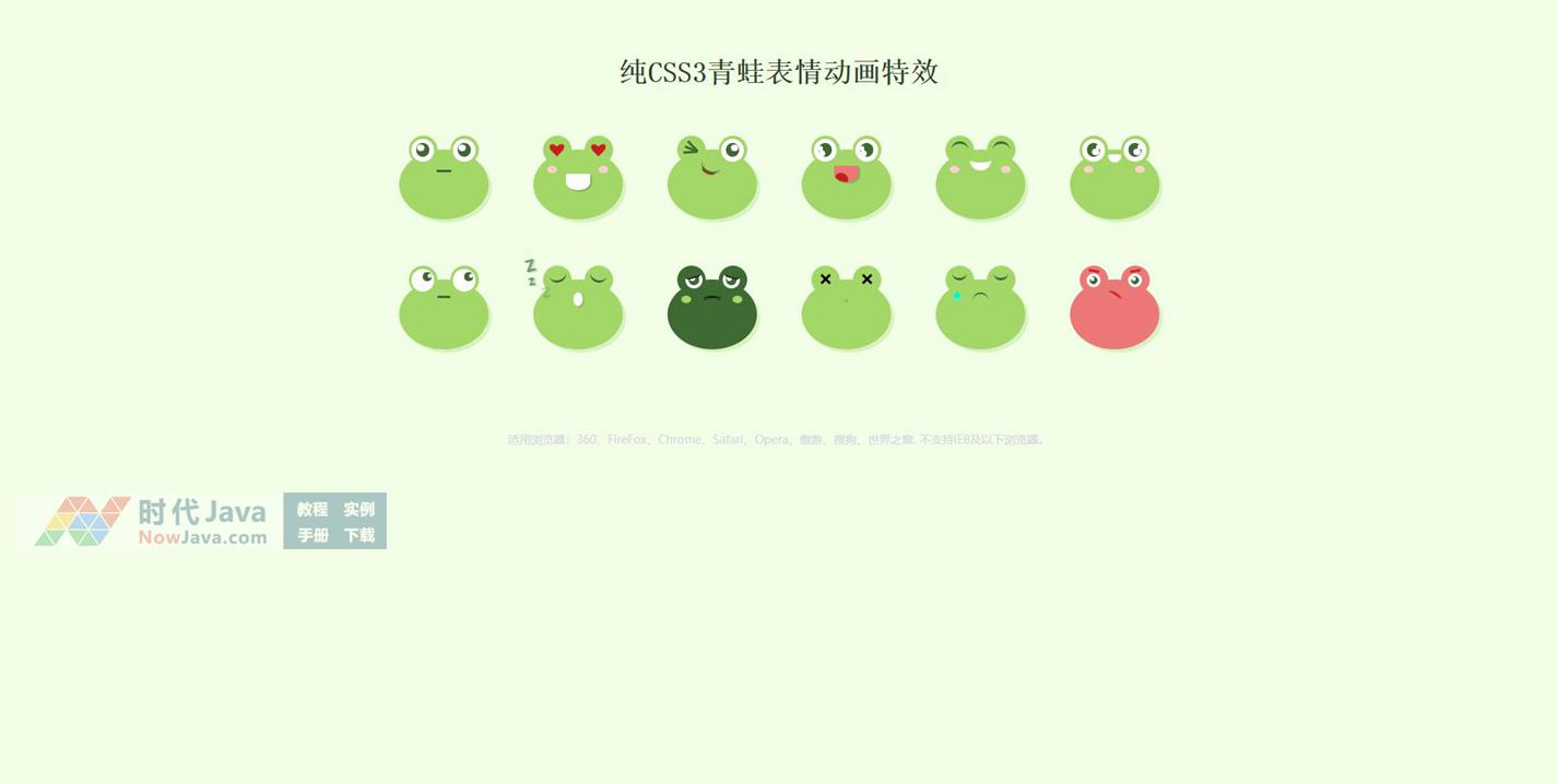 可爱的CSS3青蛙表情动画特效是一款通过CSS3 transform和animation来制作小动物青蛙图标动画效果。