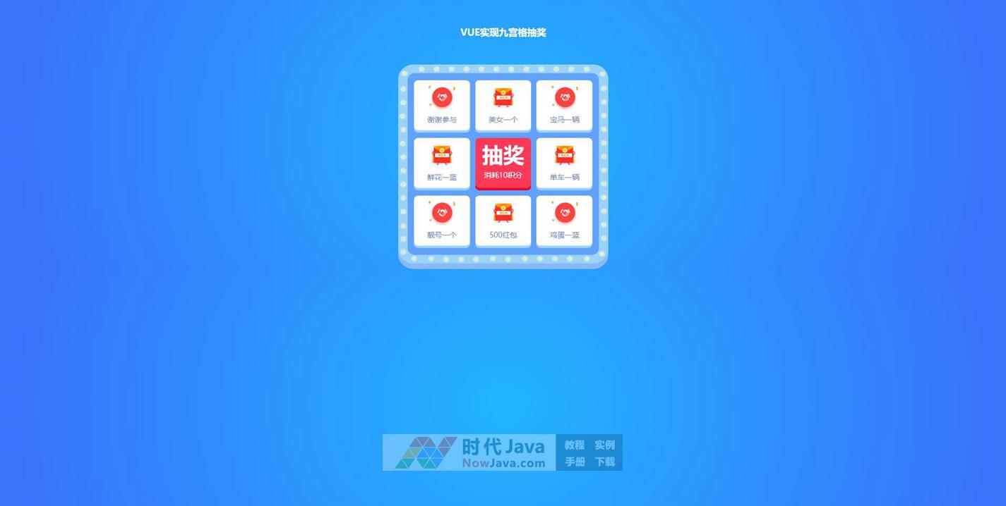 一款基于vue.js实现的九宫格抽奖代码,界面UI很精美。参数设置在lottery.js文件里修改,注释很详细。