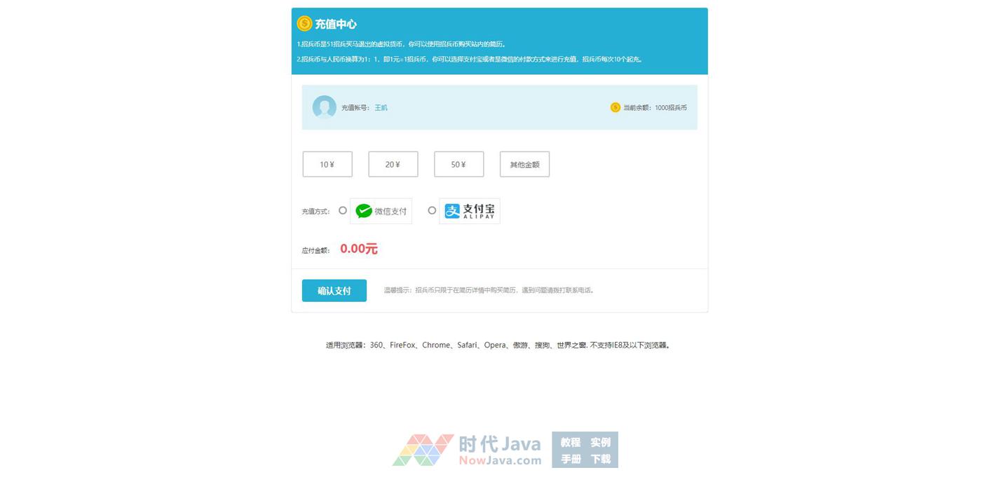 一款非常好看的基于amazeui用户充值界面代码,可以选择支付宝或者是微信付款方式来进行充值。当然这只是充值页面模板,充值功能还需要程序上实现。