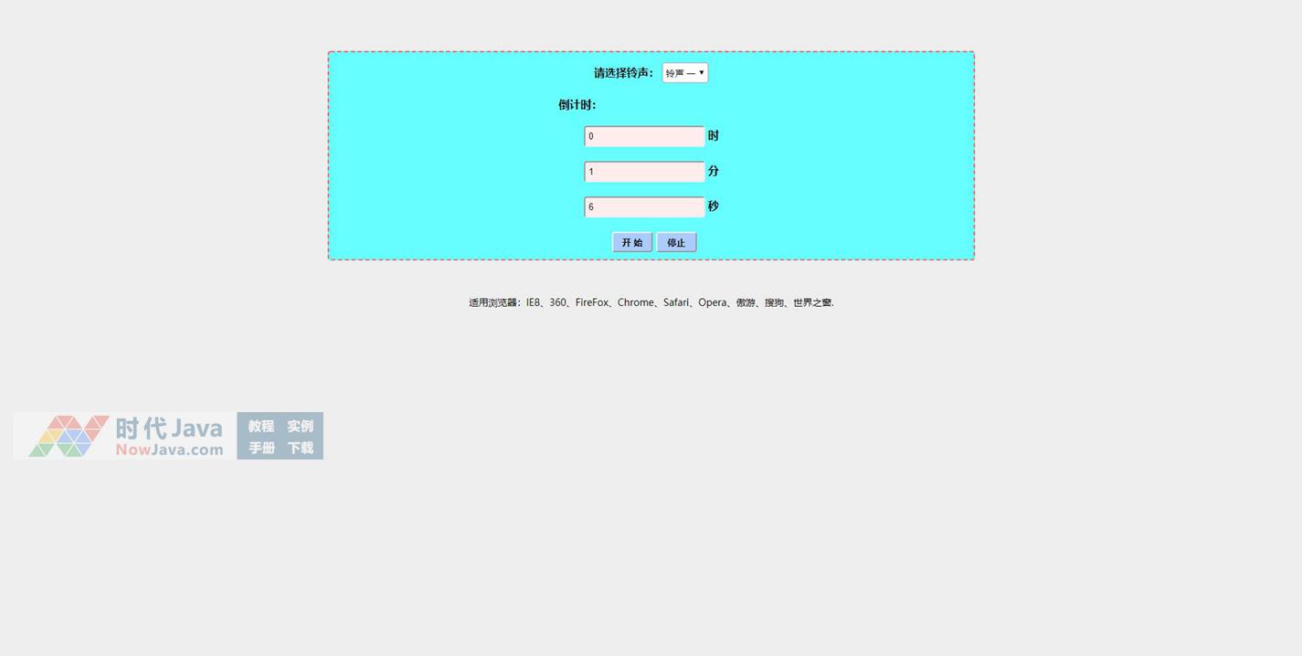 一款在倒计时结束后,报警提示铃声自动响起的js倒计时代码特效。