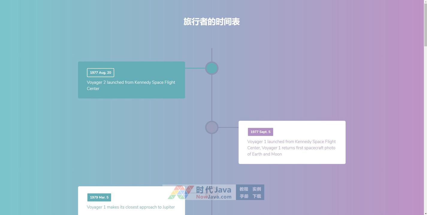一款带颜色变化动画的jQuery旅行者竖直时间轴代码。