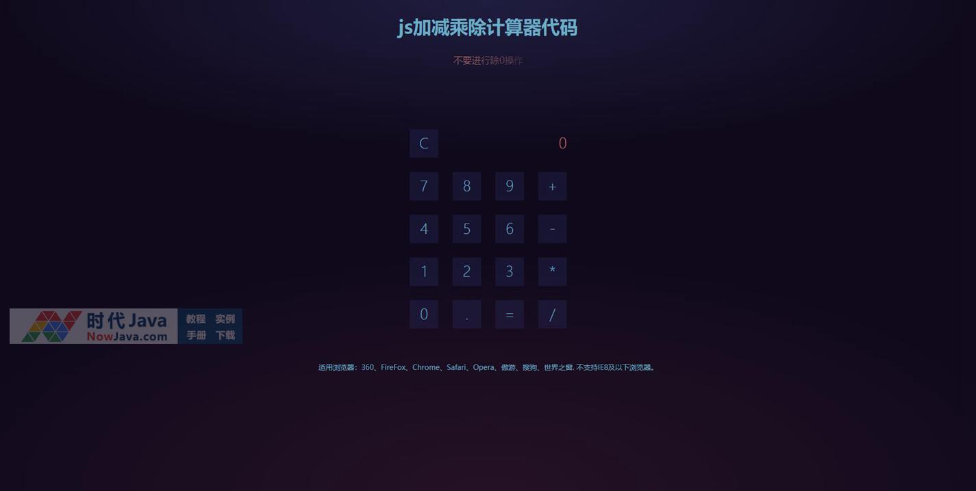 扁平风格加减乘除网页计算器js代码