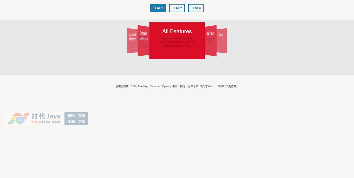 这是一款支持触摸屏的3D旋转木马jQuery特效代码,基于jQuery+CSS3实现的炫酷响应式图片切换文字切换效果,演示里有三种效果。
